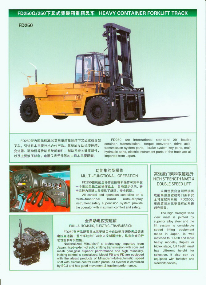 大连叉车FD250B25吨下叉式集装箱重箱叉车询价单及技术参数