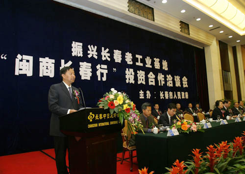 崔杰副市长在会上发言时高兴的说:“今天的洽谈会是长春与福建两地经济交流合作、谋求共同发展的一次盛会。当前,区域经济合作已是大势所趋,长春与福建的产业发展和项目合作机遇难得、潜力巨大、前景广阔。此次,我们有幸邀请到近二百位海内外知名闽商,举办这次投资合作洽谈会,就是希望通过这种方式,增进了解,优势互补,进一步深化和加强南北合作,为广大闽商提供新的发展空间,为长春发展增添新的动力。”同时,副市长崔杰还对近年来,在长投资兴业的上千户福建籍企业表达了谢意,他诚挚的说:“这些企业积极参与了长春经济建设,为长春经济社会加速发展作出了重要贡献。”