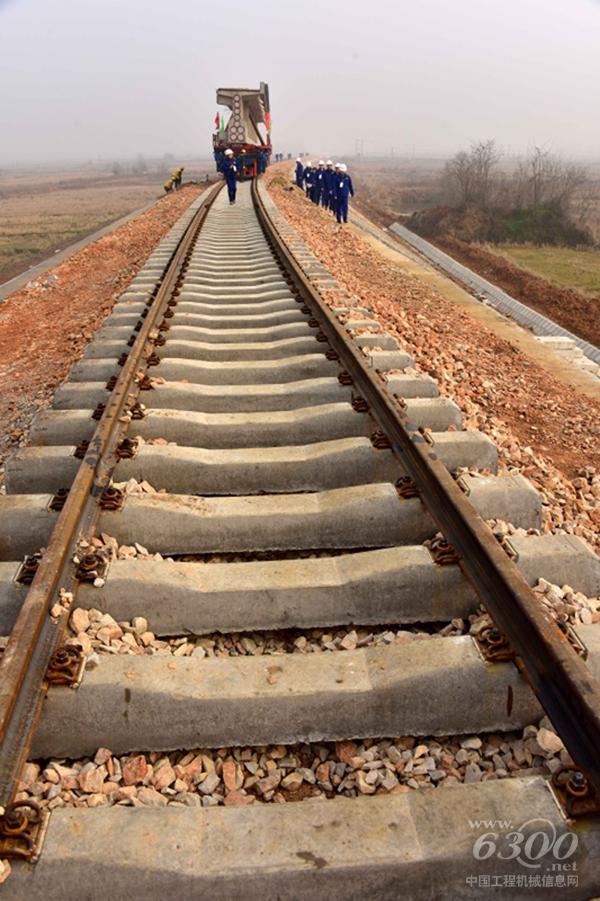 1月18日,中铁十一局职工在沿江汉平原货运铁路一期工程铁轨行走。新华社记者 杜华举 摄