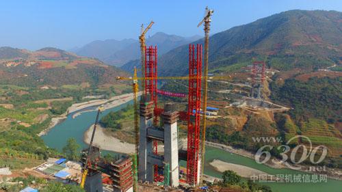大瑞铁路怒江特大桥墩柱和缆索吊塔架高耸入云。王会堂摄
