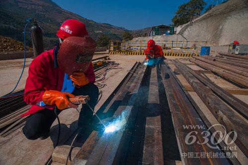 大瑞铁路怒江特大桥全面开工,图为焊工在精心焊接作业。王会堂摄