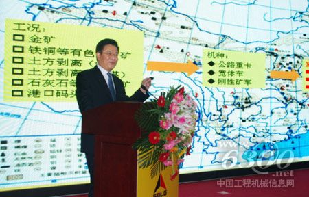 随后,山东临工总工程师支开印对产品进行了专业的解读。支总在报告中详细介绍了临工新推出的一系列产品,同时详细地总结了过去一年的问题。一位在场的客户说:能如此完整、深入地看到自己的问题,足可见临工不断超越自我的决心;能如此快速地解决问题并推陈出新,更有力证明了临工深厚的功力!