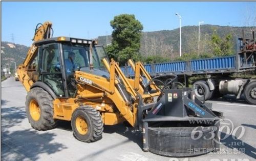 凯斯挖掘装载机安装井盖铣刨机的工作照