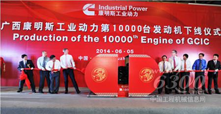 2014年6月5日,广西康明斯工业动力有限公司(简称:广康)迎来第10000台发动机的成功下线。广康是康明斯与柳工以50:50成立的合资企业,位于广西柳州市,于2013年3月正式开业,主要生产7升和9.3升工程机械发动机,为挖掘机和装载机市场提供专属动力。广西康明斯自首台发动机下线到完成5000台的交付,仅用了九个月时间,之后又以更短的六个月时间,迎来了第二个5000台的成功下线。