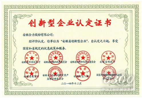 安徽合力被认定为“安徽省创新型企业”