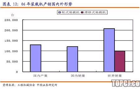 装载机我国装载机行业取得很大成就,具备了相当实力,产品已经大量出口,但是应该看到我国轮式装载机还是应该依靠国内市场,国际市场可以成为国内市场的一个补充,而滑移式装载机是我国生产商较为忽视的一个品种,未来仍然有很大的发展空间。