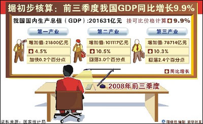 从统计局日前发布的数字来看,消费、出口形势并不差。9月份我国社会消费品零售总额同比增长23.2%,连续4个月保持23%及以上增长。前三季度出口额同比增长22.3%,比上半年加快了0.4个百分点。但业内人士普遍认为,消费在当前连续增长较快的情况下,很难再大幅提速;在国际经济形势不佳、美国金融危机肆虐的情况下,出口也很难大幅增长。因此,投资成为保持经济稳定增长的关键因素。