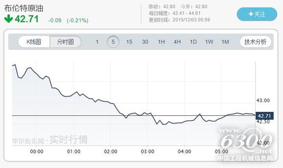 周三,ICE布伦特1601合约收跌1.95美元,跌幅4.4%,报42.49美元/桶,创2009年3月份以来最低收盘位。WTI 1601期货合约收跌1.91美元,跌幅4.6%,报39.94美元/桶,创8月26日以来主力合约最低收盘位。