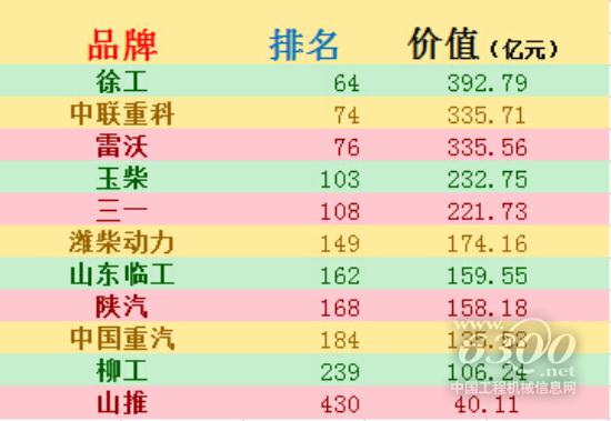 二、徐工品牌价值392.79亿元行业居首。英国KHL发布最新全球工程机械排行榜徐工列中国第一