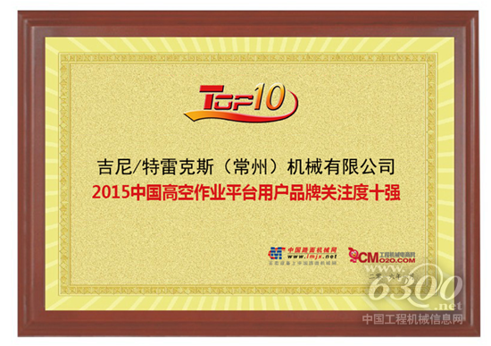 2016年1月12日,中国路面机械网和工程机械电商网发布了《2015中国工程机械用户品牌关注度排行榜》。这是继2009年中国路面机械网首次推出用户品牌关注度排行榜以来,连续第八年推出该榜单。其中,全球高空作业平台顶级品牌——吉尼再度进入2015中国高空作业平台用户品牌关注度十强。这也是继去年获此殊荣以来,吉尼已连续两年进入该榜单并荣膺榜首。