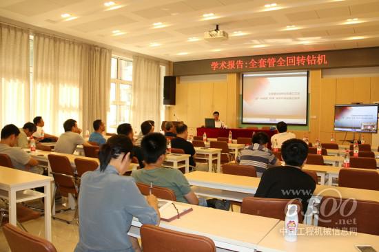 交流会上,陈建海总经理作了题为“全套管全回转钻机在国内的发展与应用”的报告。在2个多小时报告中,陈建海总经理首先为大家详细介绍了全套管全回转钻机简介及发展历程,随后通过图文信息、设备工作仿真动画、工程现场施工视频等方式全面展现了全套管全回转钻机的实际应用情况,内容极为丰富。陈建海总经理还与在场科研人员就相关问题进行了深入的交流和讨论,气氛热烈。