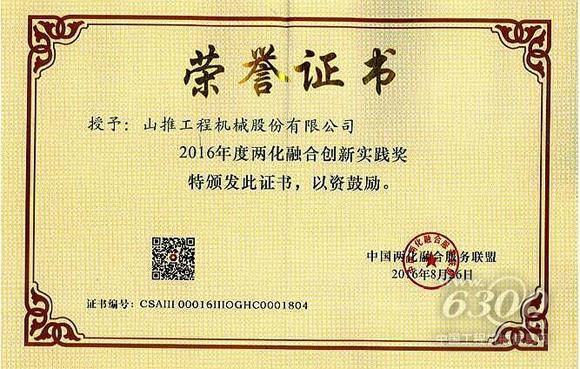 山推荣获“2016年度两化融合创新实践奖”​