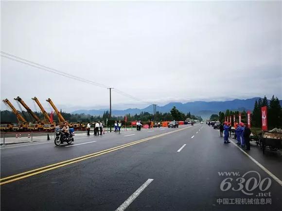 近日,成都经济区环线高速公路蒲江至都江堰段等9个项目,总投资1300亿元的全省高速公路集中开工动员大会在成都等五地同时举行。徐工起重机械作为本次工程项目唯一合作方受邀参加。都江堰特大桥工地主会场,徐工8台起重机整齐列队,静候四川全省高速公路开工建设。