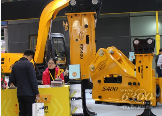 本届展会,烟台军恒共携六台破碎锤产品亮相,最大型号为S600(钎杆直径200mm),最小型号为SP450(钎杆直径45mm)。