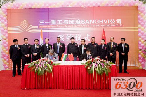 12月4日下午,三一重工与印度桑微公司举行项目签约仪式,共签订了56台履带起重机,共计4亿多元的销售合同。这是三一集团史上单笔出口最大的金额,也是全球最大的吊装设备销售合同,创下了金融危机以来工程机械行业出口的新高。