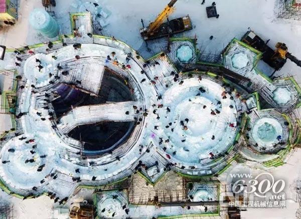 在采冰过程中,要通过起重机将重达数吨的冰块吊到平板车上,运到大世界以后,还要起重机吊下来,建造过程中,那就不用说,全都要起重机来完成。所以,我们内部施工人员都经常开玩笑说:这要不是徐工起重机,咱这大世界还真不好建。