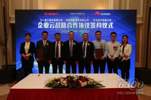 2017年1月9日,三一重工股份有限公司、树根互联技术有限公司与华为企业云签订了云计算战略合作协议,三方将在工业、智慧城市等物联网领域展开全方位深入合作。三一集团高级副总裁、首席流程信息官兼树根互联技术有限公司总裁贺东东、副总裁王晓峰,华为公司企业云业务部总裁杨瑞凯等出席了本次签约仪式。