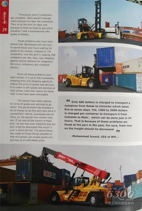 2016年,马尔代夫政府从三一购买了12台港机设备。投入使用以来,该国唯一港口马累港清关难题得到大幅缓解,同时降低了马累航线运费和清关代理费。在视察马累港时,马尔代夫总统亚明微笑着对商人们说:“物价没有理由不降价。”随后,三一港机设备与总统的这句话一起登上了马尔代夫国家杂志《商业周刊》的封面。