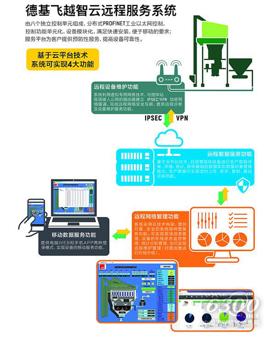 早在2010年,德基机械就为其沥青混合料搅拌设备建立了飞越智云远程服务系统。该系统可以对设备实施远程诊断和服务,为客户提供远程技术支持和一些预防性措施。也被称为沥青搅拌设备的“大脑”。