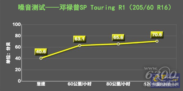 实测结果显示,怠速状态下车内噪音值为40.6分贝,加速到以上三个速度时测得的噪音值分别为63.1分贝、65.6分贝和70.6分贝。从整体结果来看,该款轮胎的怠速噪音表现优异,虽然加速后噪音值上升较快,但总体上仍保持在71分贝以下,静音性能相当良好。