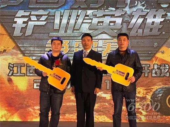 在赣州专场上,徐工V系列装载机又接批量订单,在现场举行了交接金钥匙仪式