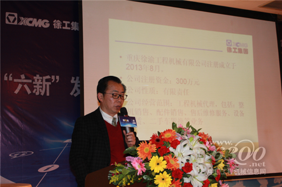 重庆徐渝工程机械有限公司董事长蒋超致辞并介绍了公司的发展状况。就像“徐渝”的名字一样,重庆徐渝把徐工道路和重庆用户联系在一起。作为徐工道路在重庆地区的战略经销商,重庆徐渝紧跟徐工道路的步伐,不断做专做精产品主业,不断提升服务保障能力,不断支持客户事业发展,把徐工道路精益求精的产品和不断升级的服务源源不断地传递给重庆客户。