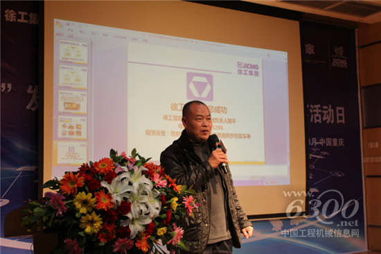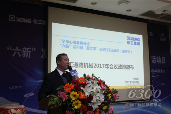 重庆徐渝工程机械有限公司副总经理宇风兵向大家介绍了本次会议购机促销政策以及服务承诺,给大家带来了实实在在的优惠和购机后的保障。作为一个在重庆摸爬滚打了近30年的老工程机械人,宇总深知用户的需求。他说,做销售不只是卖设备,更是交朋友,只有守望相助,才能获得共赢,而在这一点上,徐工道路和重庆徐渝不谋而合。