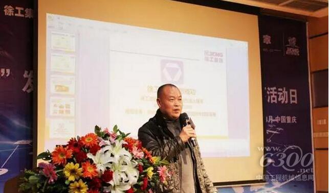 重庆徐渝工程机械有限公司副总经理宇风兵向大家介绍了本次会议购机促销政策以及服务承诺,给大家带来了实实在在的优惠和购机后的保障。作为一个在重庆摸爬滚打了近30年的老工程机械人,宇总深知用户的需求。他说,做销售不只是卖设备,更是交朋友,只有守望相助,才能获得共赢,而在这一点上,徐工道路和重庆徐渝不谋而合。