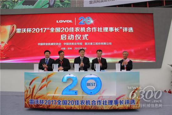 3月23日,由中国农机化导报、中国农机化协会与雷沃重工共同主办的2017年“‘雷沃杯’20佳农机合作社理事长评选”在河南郑州全国农业机械及零部件展览会上正式启动。农业部农业机械化管理司、农业机械化技术开发推广总站、农业机械实验鉴定总站、中国农机化协会、中国农机化导报及雷沃重工的相关领导出席了启动仪式。