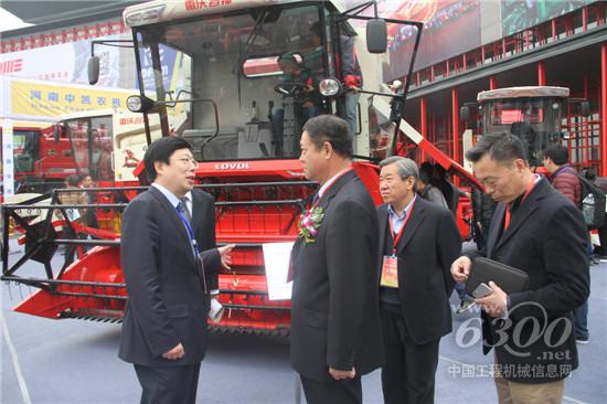 雷沃重工王玉荣执行副总经理向中国农机工业协会陈志会长介绍公司参展情况