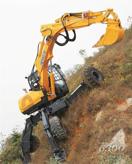 它采用步履、轮式驱动结合的特殊结构,运动方式包括全轮驱动、全轮转向、轮腿复合。这样的特点,让它不仅可在普通环境下作业,更可进入其他机械装备无法到达的作业区域进行工程施工,比如:高寒、高海拔地地区,既便是陡峭的山坡、水网、沼泽地带一样可以自如的作业。还可以通过安装不同的工作机构,使整机具有挖掘、起重、破碎及钻孔等多种作业功能。爬坡能力达到45°,可到达其他设备不能到达的区域。其整机高度可调,重心低,可以在最大35°的斜坡上作业。其作业平台可在最大斜角为20°的情况下实现全回转。总之,特别点就是:适应各种地形、多用途。