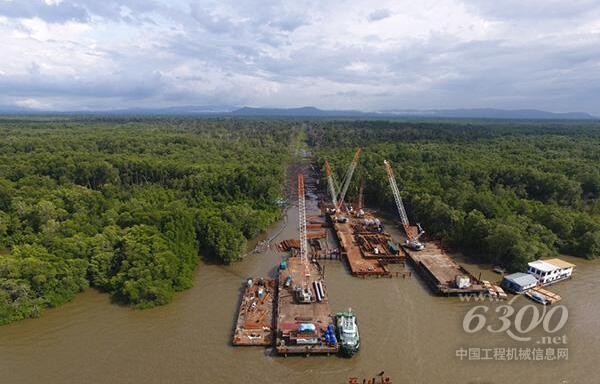 近日,来自国内装备制造企业中联重科的十多台大型履带起重机在“一带一路”沿线国家文莱,助力当地著名的淡布隆跨海大桥工程施工。清一色黄白吊臂高耸入云,与周围美丽的原始森林风景交相辉映,为“海上丝绸之路”的遥远国度增添了一抹亮丽风景。文莱淡布隆跨海大桥项目是国际公开招标的特大基础设施项目,也是中联重科携手中字头企业参建的“一带一路”上又一重大项目。