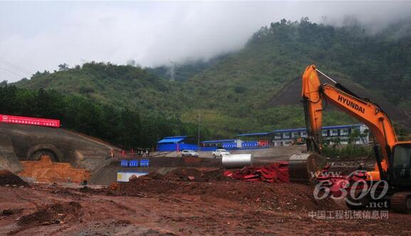 上图:施工现场,一台现代挖掘机正在施工