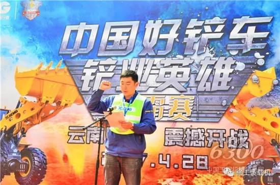 昆明青龙石场总经理刘富贵代表客户进行发言,刘总用“有朋自远方来不亦乐乎”欢迎各位的到来,刘总同时也对各位选手提出美好祝愿,希望他们能够充分展现自我才华,比出精彩,展示云南“铲业英雄”风范。