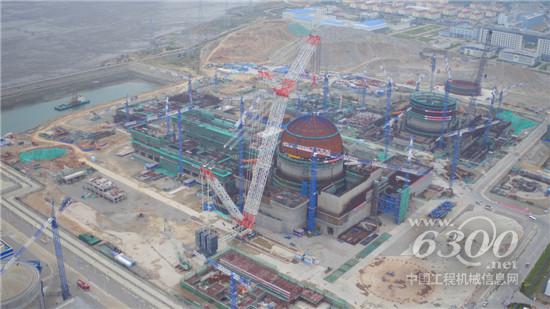 ▲中联重科3200吨履带式起重机正在吊装“华龙一号”穹顶