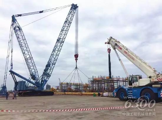 徐工履带起重机、越野轮胎起重机在刚果(布)黑角石油港口联合施工
