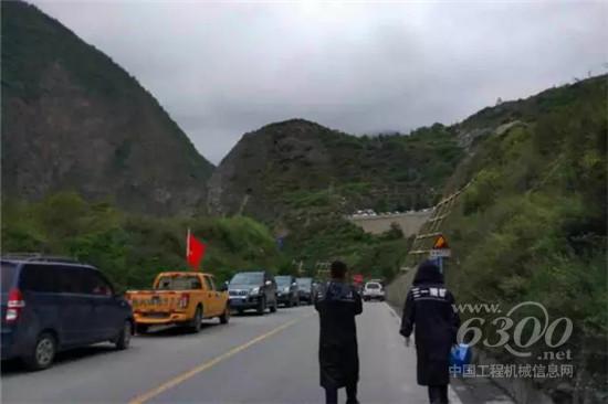 17:34——三一救援突击队到达距离茂县叠溪镇8公里处,由于出现严重堵车,三一工作人员只能先行下车,步行前往救援现场。