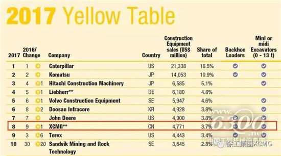 在2016年英国KHL世界最权威全球工程机械行业排名中,徐工位列全球第8位,是唯一进入前10的中国工程机械企业。