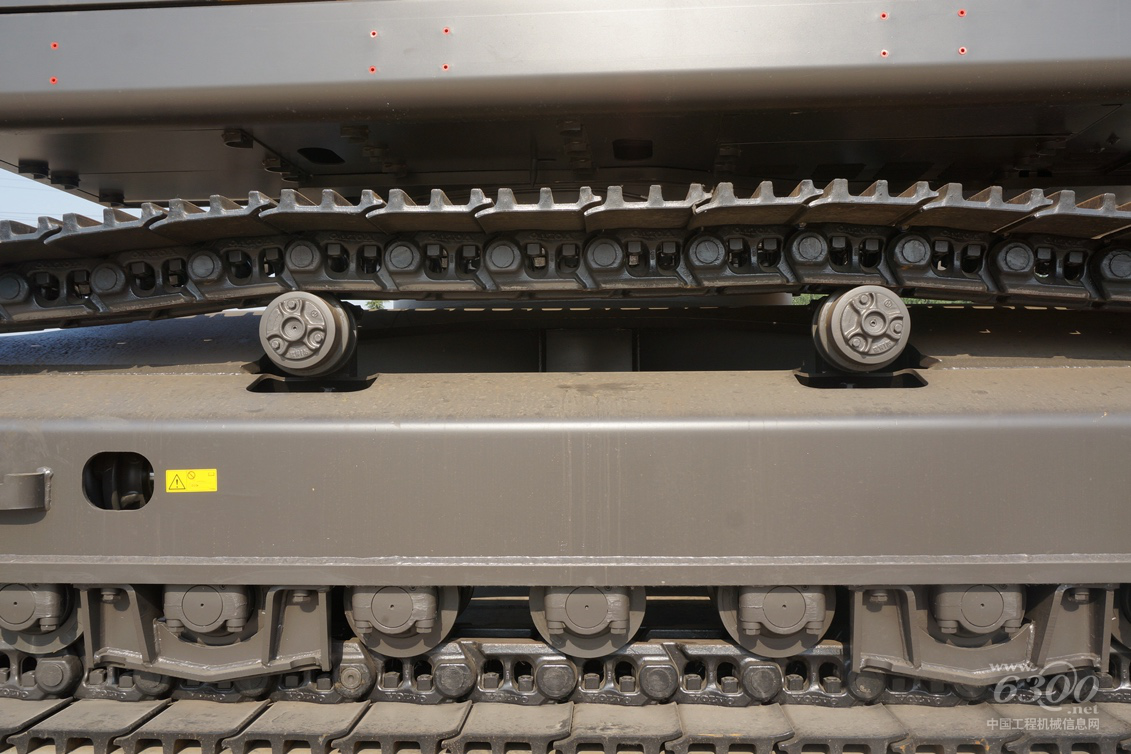 如果把这个机器比做一个人的话,那么,E6460F可以称得上腿脚有力,它采用国内知名品牌的高耐磨矿山履带、双链轨护板(保护支重轮和链轨),即使在崎岖颠簸的矿区作业,也能如履平地,行走自如。