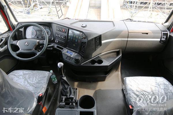 外观方面,三一重卡在其商砼车型上进行了升级,驾驶室的长宽高均进行了增大,主要是为其内部有更好的空间。红、白、黑三色的涂装和U型的前脸设计让车辆更具辨识度,车门上的SANY灰色配色LOGO,也打破了国内车型配色较为单一的固有模式。