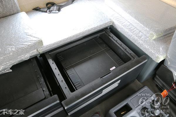 驾驶室的上方前后共有6个储物箱+前边和两侧共有4个储物槽,储物空间可以说是非常大,对于常年奔波在路上的司机兄弟来说,足够大的储物空间可以提高他们的生活质量。
