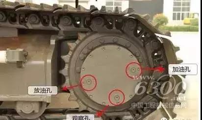换油时间:在达到换油周期后,一定要及时更换新的齿轮油,一般时间选择在挖掘机停止工作半小时后,此时齿轮油在减速器底部并且油温不会太高也不会太低,能尽可能多的排出旧油,等旧油排干净后旋紧放油螺丝,再从齿轮油加注口加注新的齿轮油,此时要注意观察游标尺,避免过少或是过量的加入齿轮油。