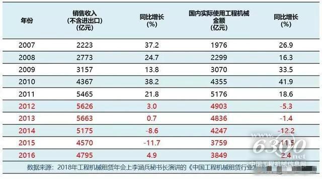 同时,中国工程机械租赁行业经历了数十年的高速发展,随着近两年制造企业和代理商的杀入,租赁行业逐渐步入成长期。租赁公司在摸爬滚打中也渐走向成熟,这种成熟体现在专业人才、技术、设备和管理上的优势。把工程机械的相关业务交给租赁公司,既减轻了施工企业的资金压力,有利于施工企业在短期内获得丰富的机械设备资源,实现以小搏大的经营模式;也有助于施工单位将其主要精力集中于核心业务,和对于核心竞争力的塑造。