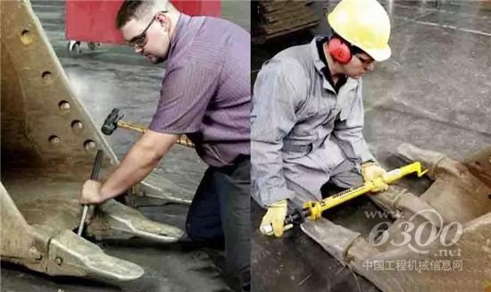 左:一般工具拆斗齿 右:专用工具拆斗齿