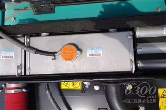 2,没有或者膨胀水壶破损的挖掘机,就需要拧开水箱的水箱盖查看了水位,倒入冷却液时务必倒满水箱,高温作业时需要经常查看水位。在这里提个醒:当发动机工作时,发动机水温过高报警,应当停止挖掘机,用水倒在水箱外先给水箱降温,待发动机“清凉”后,再打开水箱盖加注冷却液,避免打开水箱盖的瞬间冷却液的溅出而造成驾驶员的伤害。