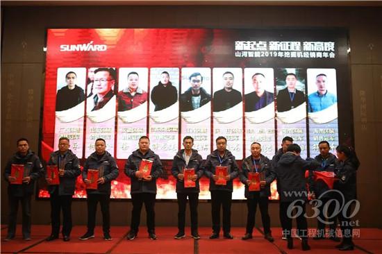 付出必有回报!在年会上,山河智能还对2018年度优秀经销商、2018年度各区域销售冠军进行了隆重表彰并颁奖。