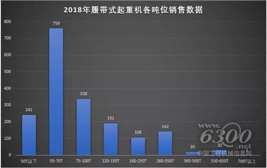 2018年全地面起重机销售主要在350T以下的车型,这种车型一般局限于当地租赁使用,原有车型大部分为60米主臂以下,这几年经过厂家升级改造,新款车型主臂长度均在70米以上,两者在性能差距上越来越明显。