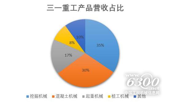 三一重工挖掘机械、混凝土机械、起重机械等板块收入在去年均实现增加。其中,挖掘机械销售收入达192.47亿元,同比增长40.8%,连续八年占国内市场销量第一。