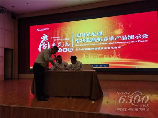 夕阳西下,迎着晚霞,大家步入了新乡国际饭店的宴会厅,迎来了最后一个环节——室内会议,集团介绍,企业视频,曼尼通滑移装载机的优势,无不引人入胜,多家与会单位签订曼尼通滑移装载机意向书将整场活动的气氛推向高潮。最终,在各位市政公路单位领导嘉宾的大力支持下,河南地坤机械设备有限公司总经理郑书国宣布本次会议取得圆满成功。
