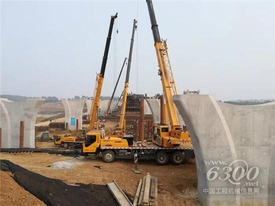 “人气王”QY25K5-1持续奋战,“扬起巨擘”,为连接豫西南和鄂西北的河南省重点工程——新207国道,搭建邓州外环跨河大桥
